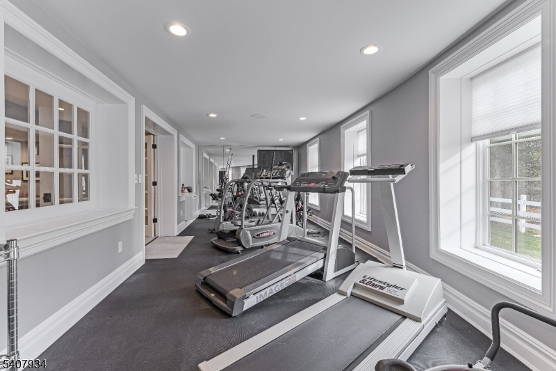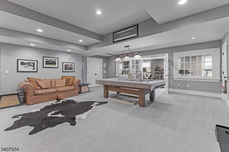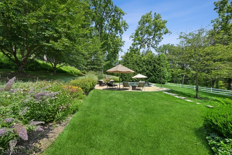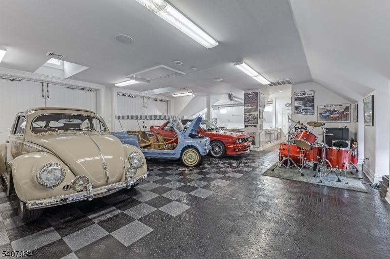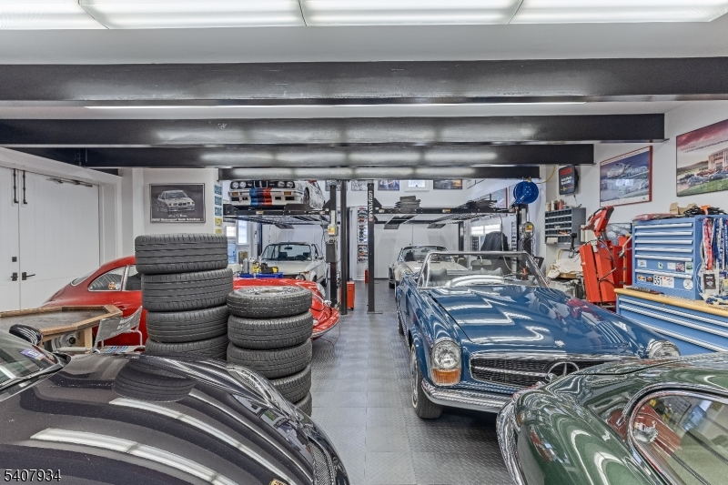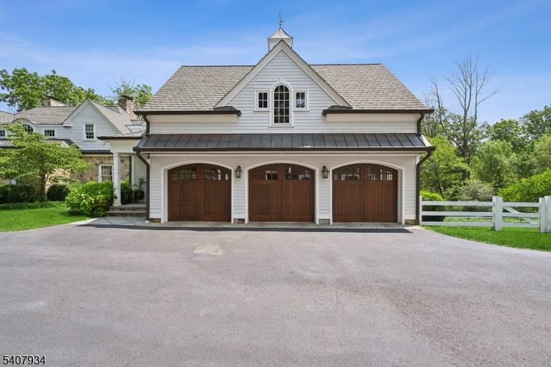 Set on nearly eight farm-assessed acres bordering Mendham and Peapack-Gladstone, Golden Acres Farm offers a blend of refined country living and amenities for the serious automobile enthusiast. Architect Patrick Burke designed the 6,103-square-foot residence that delivers privacy, craftsmanship, and functionality in equal measure. The main residence is thoughtfully designed for both everyday living and entertaining. A first-floor primary suite provides ease and comfort, featuring a fireplace, dual walk-in custom closets, and direct access to the rear grounds. The custom kitchen includes professional-grade appliances, a wood or gas fired pizza oven, dual dishwashers, steam oven, coffee bar, and a generous center island. The Great Room frames the pastoral views through multiple sets of French doors opening to the expansive terrace. Upstairs, two ensuite bedrooms and a private in-law suite with kitchen offer flexibility for guests. The walk-out lower level expands the living space with a recreation room, game room, gym with daylight, additional kitchen, office, and project room perfect for hobbies. An air conditioned vehicle barn accommodates approximately 15 cars with two vehicle lifts, a bathroom, office/den, and security system. A second barn provides multi-purpose storage for vehicles or animals. An in-ground heated saline pool, fenced rear yard, and a covered patio featuring a wood-burning fireplace and television are ideal for outdoor enjoyment.
