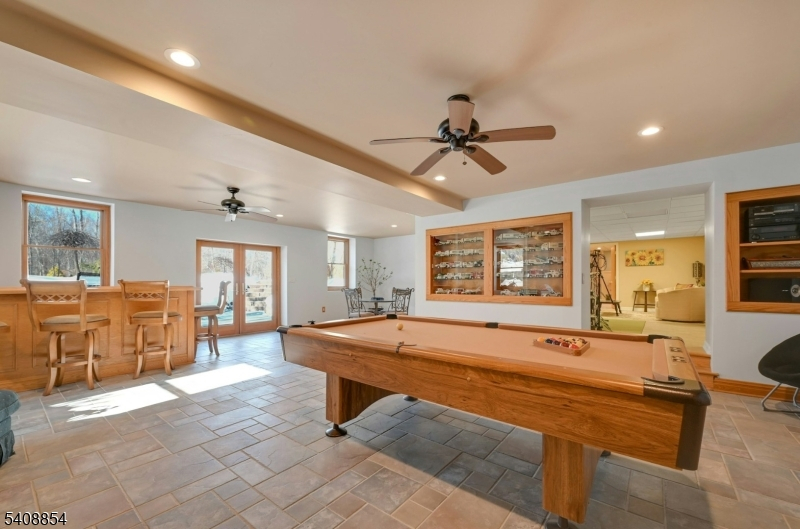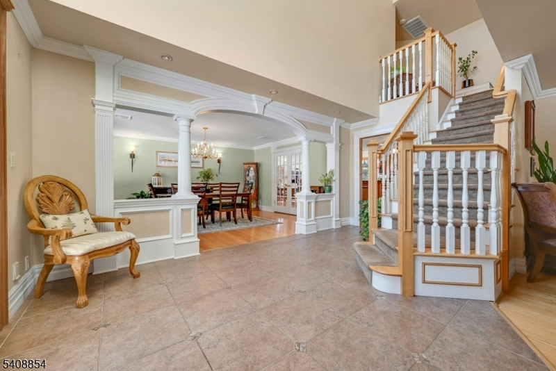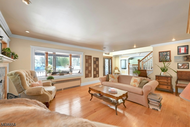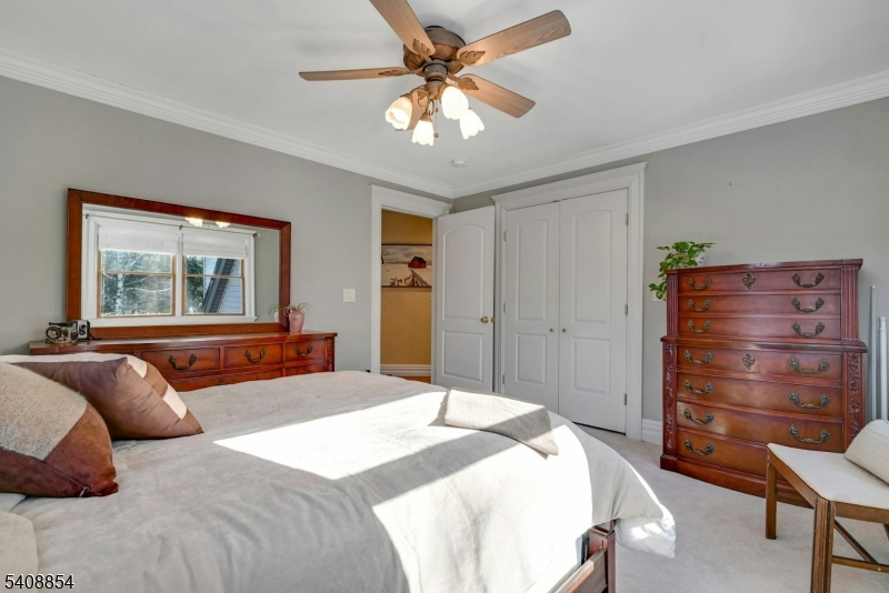 Great Location! Welcome to this beautiful over 4800sf custom colonial on .96 acres which is backed by an additional 1.6 acre private wooded lot. (Saddle River-See notes below) A welcoming lemonade wrap around porch w/ gazebo opens to the foyer which is flanked by a cozy living room and spacious dining room. Oak flooring in both rooms. The kitchen flows seamlessly into the sun-filled great room with Australian cypress flooring and large windows. There is a 1st floor Bedroom/Office with mahogany flooring and a full bath. Also on the main floor is a powder room, Mud room, which leads to a 3 car heated garage with 10 ft ceilings and no columns. Two staircases take you to the 2nd floor which offers 4 bedrooms, 2 full baths, and a primary ensuite with 2 large dressing rooms and walk out balcony. Laundry is also on the 2nd floor. Lowe level features office, full bath, large entertainment room with built in bar, exercise rm. Double doors exit to lower patio. An upper patio features a full outdoor kitchen, and freestanding barwith full electric. There are 3 rear door entrances to the patios. Radiant heat in the Great Room, kitchen and all the bathrooms. The circular driveway is new asphalt with Belgian block. A large pond with 3 waterfalls offers complete privacy for the front of the house. Yard is custom landscaped. ***Rear lot in Saddle River, taxes $1772.28, Block 1202/Lot 13, which is only accessed via WCL side is included in the Sale.