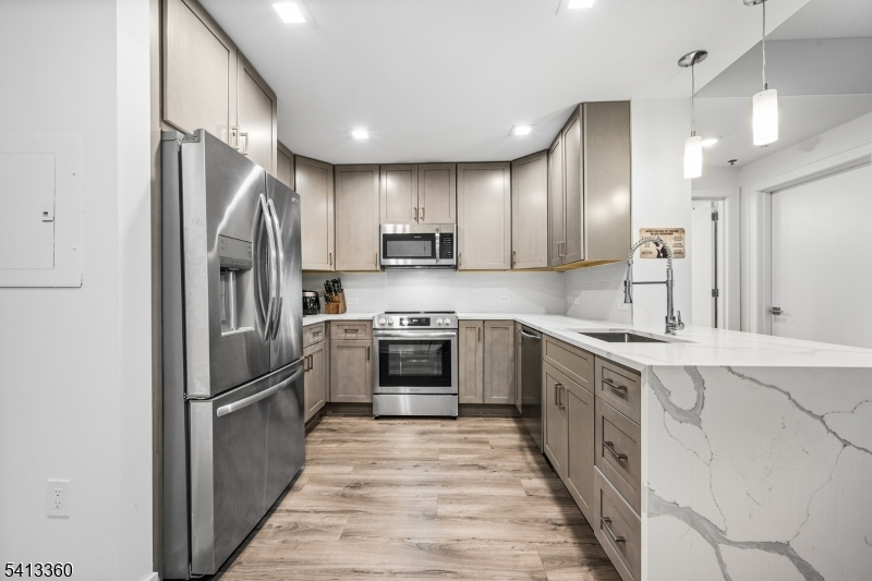 Welcome to 1614 at The Skyview, a fully renovated, high-floor 2-bed/2-bath condo. West-facing with stunning sunset views, this unit is one of the few to offer breathtaking views. Renovated 2023, the home features a premium new appliance package including washer/dryer. PTAC units ensure year-round comfort. The spa-like baths showcase porcelain tiling, motion-activated LED vanities, and chrome fixtures by Kohler, with a spa shower. Additional details include a customized walk-in closet, further enhancing the quality of daily living. In the heart of vibrant Downtown Rahway, Skyview offers unmatched convenience. Steps from NJ Transit to Manhattan in 30 minutes, Newark Penn in 20, and EWR in 10, along with easy access to major highways. Amenities include: concierge, fitness center, garage parking ($120/month per car), a resident lounge, and a seasonal rooftop terrace with panoramic views and grills. Plus, Watt Hotel's modern lobby, restaurant, and bar are ideal for entertaining or hosting guests. Unit 1614 is a smart long-term investment in one of Union County's most commuter-friendly and rapidly growing neighborhoods. Whether you're seeking a primary residence, pied- -terre, or a savvy investment, 1614 stands out as one of the most modern and refined offerings in the building.