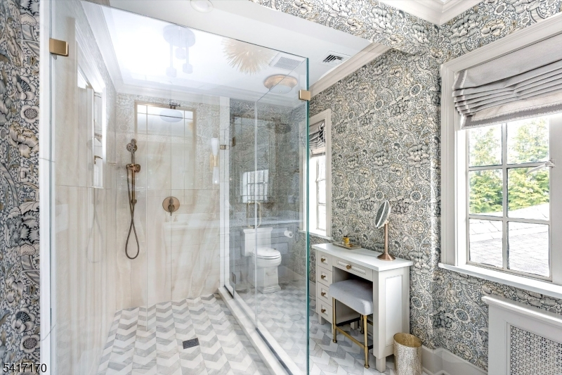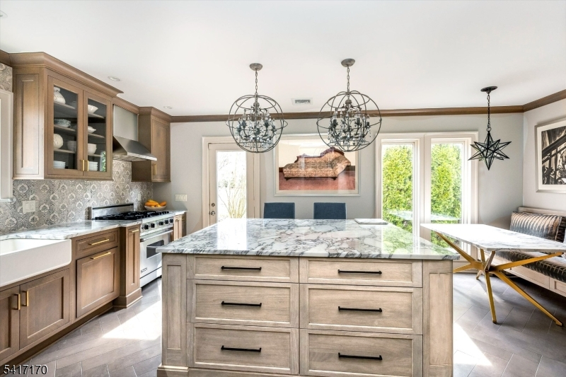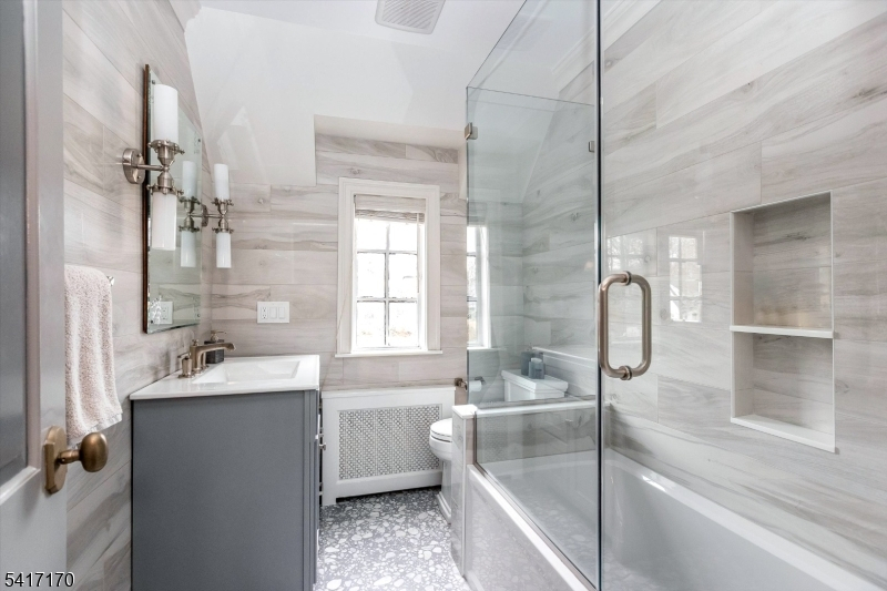 Perfectly positioned on a corner lot on premier Douglas Rd, this 5 BR, 3.1 bath home blends classic charm with magazine-worthy renovations and exceptional indoor/outdoor living. The stunning renovated kitchen features high-end cabinetry, a large center island, marble backsplash and countertops, and a separate seating area framed by an oversized window that fills the space with natural light. Luxuriously renovated baths showcase beautiful finishes and thoughtful design throughout. The spacious living room is ideal for entertaining and offers access to the sunroom with bluestone floor. Bedrooms are well-scaled and light-filled, including a show-stopping primary suite with a custom walk-in closet with abundant shelving and storage, and a beautifully appointed bath with double custom quartz vanity, large porcelain shower and marble floors. Enjoy multiple inviting spaces to relax and unwind, including the welcoming front porch, second-floor balcony, and the private gravel patio tucked behind the garage that feels like a secret garden. The attached garage connects to the home via a convenient breezeway perfect for bringing in groceries on rainy days. Professionally landscaped grounds with exterior accent lighting enhance the curb appeal. Just 2 blocks from highly regarded Glen Ridge public schools, a nearby park, and NYC transportation from Glen Ridge train station, this special home offers both beauty and unbeatable convenience.