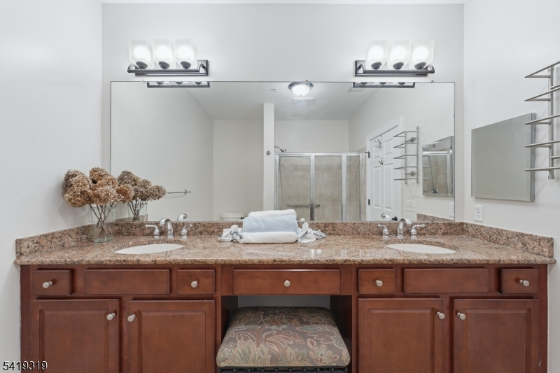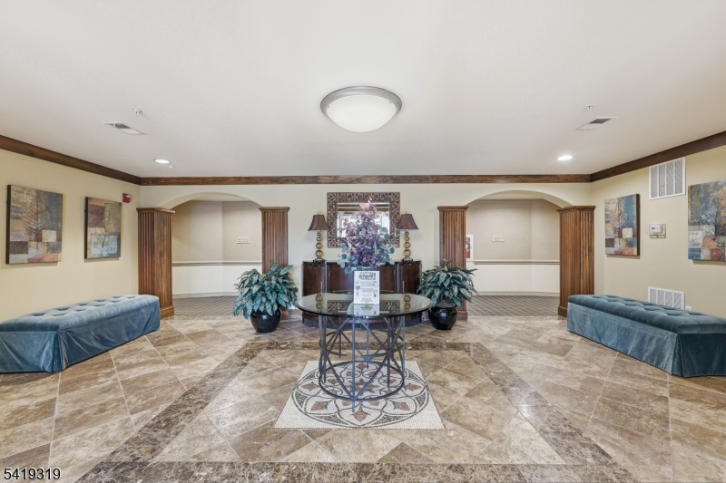 Beautifully refined, fully move-in ready, second-floor residence in the sought-after Four Seasons at Bridgewater. This meticulously upgraded home features new hardwood floors, high ceilings, crown molding, and recessed lighting, creating a bright and sophisticated ambiance. The kitchen features 42" cabinetry with glass pane inserts, granite countertops, a high-end backsplash, slide-out storage, and newer appliances (approx. 1 year), complemented by updated fixtures. Both baths are updated with granite counters and modern finishes. The spacious primary suite includes two closets, one a "California custom" walk-in, and a bath with a double vanity and a stall shower. Additional upgrades include updated ceiling lighting, upgraded door hardware, newer washer/dryer, and an air conditioning system with a recently replaced fan and engine (6-month warranty). New bedroom blinds are included; drapes and wine rack remain. Includes one assigned underground parking space complete with private storage (#32), and elevator access near the main lobby. Amenities include a clubhouse, fitness center, library, billiards, heated pool with jacuzzi, patio, gardens, and bocce. HOA fees include common area maintenance, snow removal, landscaping and trash removal. Conveniently located near shopping, dining,healthcare and major highways. This is a great opportunity to own a thoughtfully upgraded 55+ community condominium where comfort, quality, and lifestyle come together effortlessly!