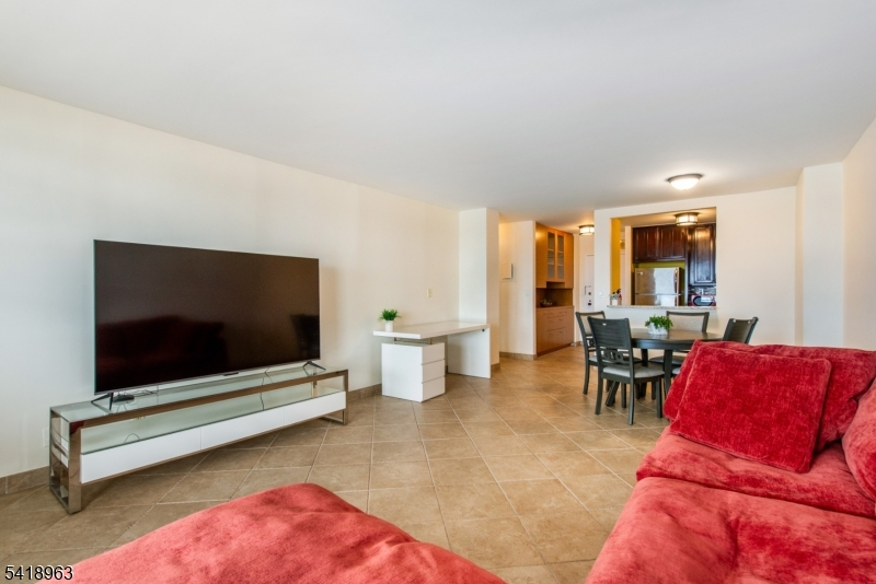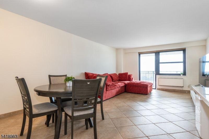 Spacious 1-bedroom, 1-bathroom apartment located in a well-maintained high-rise in North Bergen. This unit offers a functional layout with a bright living and dining area, large windows providing abundant natural light, and unobstructed NYC views. Enjoy a private terrace ideal for outdoor relaxation. The kitchen features ample cabinet space and flows seamlessly into the main living area. The bedroom is generously sized and includes a custom walk-in closet, while the full bathroom is well-appointed. Freshly painted throughout. One assigned garage parking spot is included. The building offers elevator access and professionally maintained common areas. Conveniently located near shopping, dining, parks, major highways, and public transportation with easy access to NYC. Option to rent furnished for an additional fee. Comfortable and convenient high-rise living.