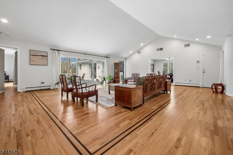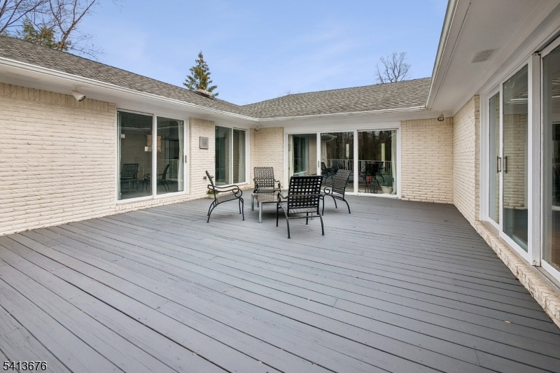 This All Brick Ranch offers the very best in one floor living ideally nestled on .46 acres with a totally level private backyard, walking distance to highly rated Deerfield Elementary School. This east facing ranch welcomes you with a circular driveway w/ Belgian block curbing & a grand double front doors. Step into a bright, airy living room w/ marble & new hardwood floors, soaring ceilings & large sliding glass doors to the expansive deck. The huge family room invites you to relax & unwind. Adjacent to the family room is a formal dining room with tray ceiling, followed by a new stunning gourmet eat-in kitchen featuring white cabinetry, large center island, an indoor grill, Professional exhaust over LG 5 burner range w/ griddle, charming wood burning FP & marble floor. 2 sliding doors connect the kitchen to the large deck, perfect for entertaining. What truly sets this kitchen apart is the open dining area, perfect for hosting large groups w/ comfort & style. The left wing of the home features 4 bedrooms, including spacious primary suite w/ new primary bath, a huge walk-in closet & private access to the deck. All bedrooms are enormous & the floor plan flows beautifully. The full size walk-out lower level, currently being used as an antique gallery, has 8' high ceilings, rough plumbing & windows offering great natural light and tremendous potential. There is an entry door from the driveway, access to oversized 2-car garage, LED light fixtures, hot water baseboard heat. A gem!