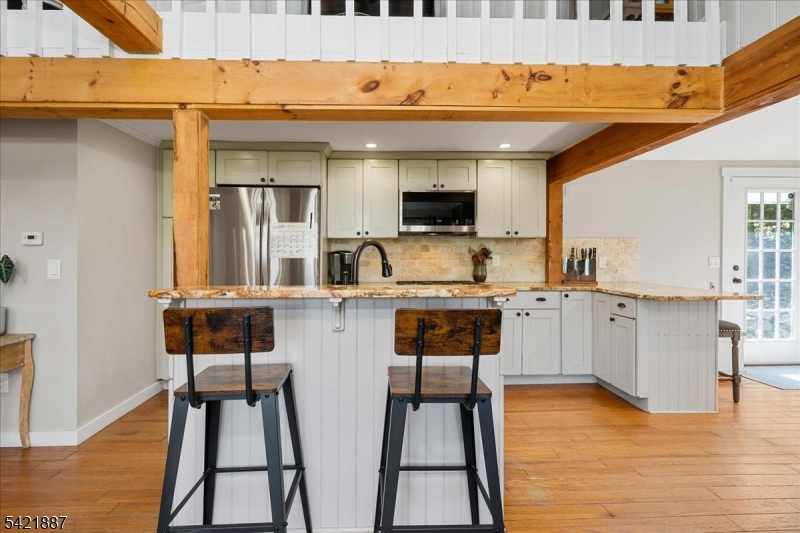 Welcome to your perfect lake-style retreat, where comfort, charm, and modern updates come together beautifully. This spacious 4-bedroom, 2-bath home offers a warm, inviting layout ideal for everyday living and entertaining.Hardwood floors flow throughout the main living areas, leading to a bright living room with two skylights and a wood-burning insert perfect for cozy winter nights. The updated kitchen features modern finishes, ample cabinetry, and connects seamlessly to a dedicated dining room for gatherings.The lower level includes two bedrooms (one currently used as an office), laundry, and a pantry. On this level, enjoy your own private cinema room perfect for movie nights, game days, or relaxing evenings.Upstairs, the large primary bedroom offers new carpeting, a walk-in closet with a stylish barn door, and access to a newly renovated bathroom. A second bedroom features a walk-in closet with new carpets. Unique catwalk overlooking the living space is also present.Outdoor living is just as impressive. Step out onto the paver patio overlooking a tranquil koi pond & waterfall, creating a peaceful backyard escape. Entertain guests at the charming bar shed or simply unwind in your own private oasis.Highland lakes offers 5 Lakes & 7 beaches, closest one is only a 3 minute walk from this property! Whether you're looking for a full-time residence or a relaxing getaway, this lake-style home delivers the perfect blend of indoor luxury and outdoor serenity.