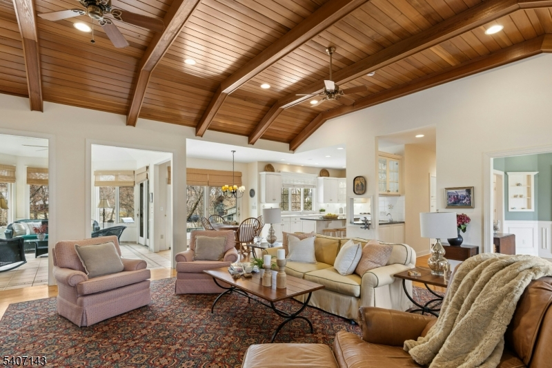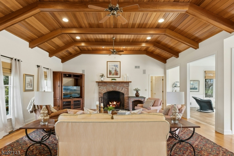 LOCATION LOCATION! Nestled on a coveted private lane, this exceptional and stunning custom-designed Colonial blends privacy, craftsmanship, and timeless elegance. The home features custom hardwood floors and an open and functional layout on the first floor, including an expansive primary suite with large walk-in closet and en-suite bath. The kitchen with center island, breakfast area and wet bar opens to the SHOW-STOPPING GREAT ROOM with custom paneled vaulted ceiling and a wood burning fireplace. The cozy den/office with fireplace & the four-season sunroom both add flexible spaces to the first floor. Upstairs, 3 oversized bedrooms and a full bath are located off the large loft area which can be used as a playroom or office. Endless possibilities await in the walk-up attic space above the 3-car garage--perfect for transitioning to heated living space as a guest retreat, or bonus room-- and in the unfinished basement providing abundant storage, flexibility, and additional potential. A brand-new roof and second floor HVAC system add value and peace of mind. The property rests on a serene 1.77-acre setting ideal for both everyday living and peaceful retreat. The large bluestone patio overlooks the tranquil rear property and is perfect for entertaining, relaxing, or enjoying complete privacy. RARE OPPORTUNITY to live close to major highways, Newark Airport and NYC transportation! ALL DAY KINDERGARTEN in top rated Scotch Plains schools!