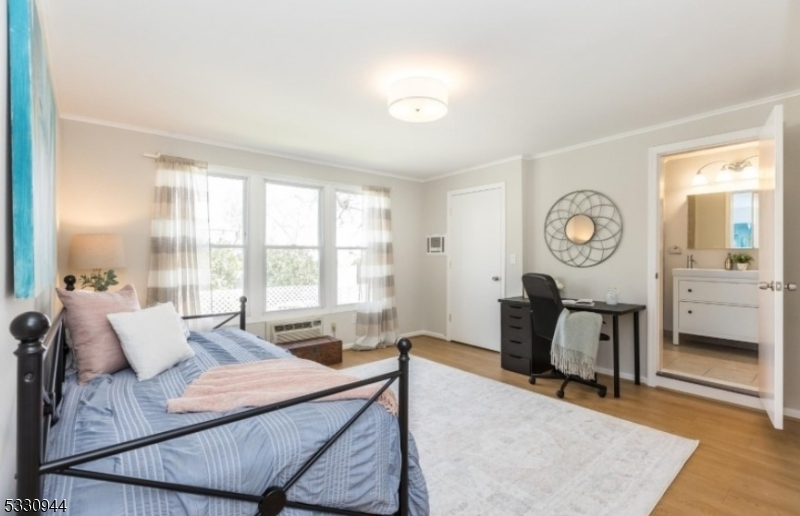 Elegant, Light-Filled Ranch in a Premier Location. Set on a quiet, tree-lined street in a highly desirable neighborhood, this beautifully maintained 3-bedroom residence offers an exceptional blend of comfort, style, and convenience. Ideally situated just 0.5 miles from top-rated Wyoming Elementary, 0.8 miles to NYC trains, and minutes from Millburn, Maplewood, and vibrant downtown shopping and dining. A gracious, sunlit interior welcomes you with seamless flow between living spaces. The inviting living room opens to a spacious eat-in kitchen, thoughtfully appointed with stainless steel appliances, custom cabinetry, and abundant storage, perfect for both everyday living and entertaining. A charming den/sunroom offers a serene retreat with views of the private, fully fenced backyard. The primary bedroom features generous double closets and access to a well-appointed hall bath, while two additional bedrooms share a convenient Jack-and-Jill bathroom. The walkout lower level provides versatile living space, ideal for a recreation room or home office, along with a powder room, laundry area, and direct access to an oversized two-car garage. Additional highlights include central air conditioning and radiant heated bathroom floors. Offering timeless appeal, functional living, and an unbeatable location, this home presents a rare opportunity not to be missed.
