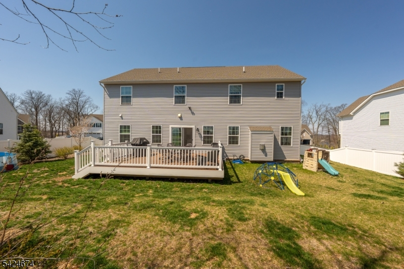 Welcome to this stunning newly constructed 2023 colonial, where modern design meets timeless elegance. This 5 bed, 2 and a 1/2 bath home has all the upgrades and amenities you could ask for from the covered front porch to the vinyl fenced in yard. The first floor has an inviting open concept layout, seamlessly connecting the kitchen and living area, perfect for entertaining friends and family. The second floor offers additional bedrooms with tons of natural light including the serene master suite with walk-in closets and its own private primary suite bathroom. The deck overlooks the large backyard perfect for unwinding or gatherings. This newer development offers public utilities. Close to Lake Hopatcong, shopping, restaurants, coffee shops and major highways. Don't miss this opportunity to make this property your home!