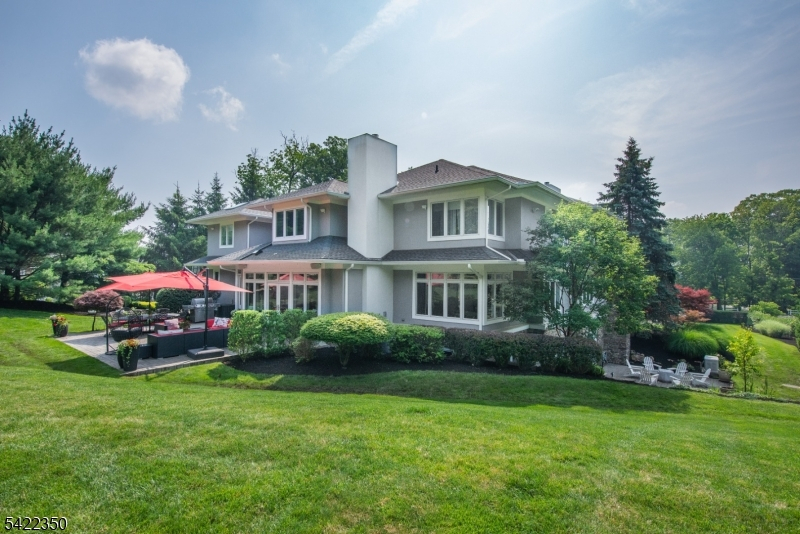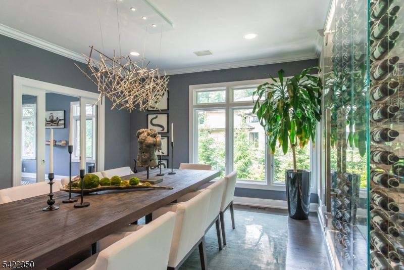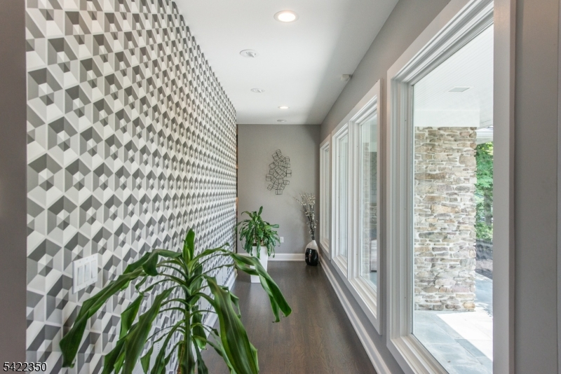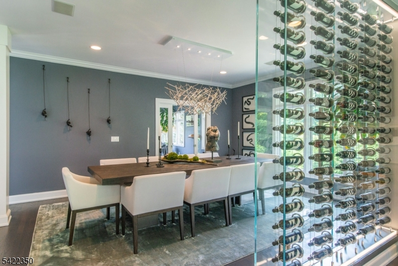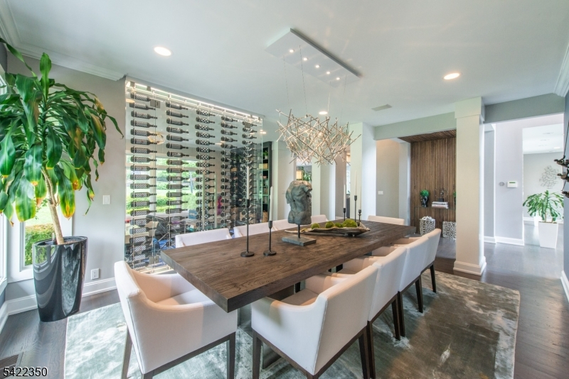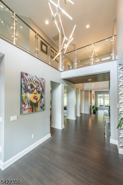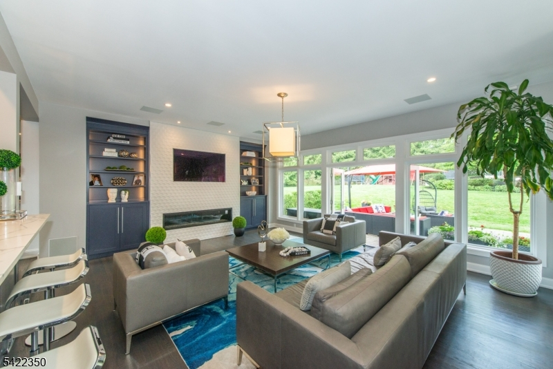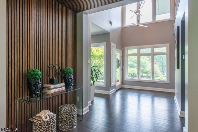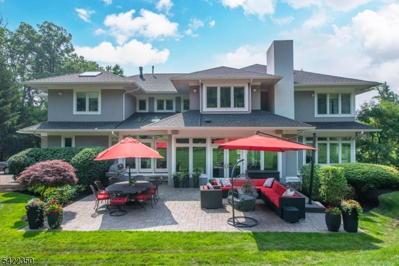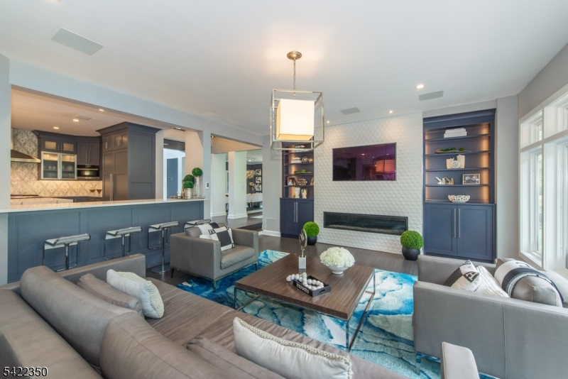 Experience sophisticated luxury in this stunning contemporary New York-style penthouse-inspired home, set in the serene suburbs of New Jersey. This exceptional residence showcases modern design, high-end finishes, and impeccable attention to detail throughout. Enter through a dramatic two-story foyer with striking lighting, glass panels, and sleek stainless steel railings. The elegant dining room features a custom wine wall, perfect for entertaining. The designer chef's kitchen offers quartz countertops, custom cabinetry, and premium finishes. The sunken family room is filled with natural light from walls of glass and features a built-in gas fireplace. Select rooms highlight accent walls with custom 3D detailing, adding a unique and modern touch. Step outside to a resort-style backyard with multiple seating areas, landscaped grounds, and space for play or relaxation. The finished lower level is an entertainer's dream with a private movie theater, cigar lounge, and home gym. A dedicated home office provides the perfect work-from-home setup. The luxurious primary suite features a custom dressing area with built-in closets and display storage. With 5 bedrooms and 5.5 baths, this home offers the perfect blend of comfort, style, and upscale living.