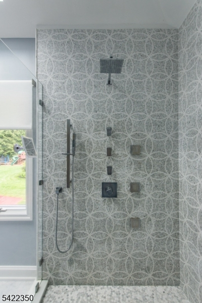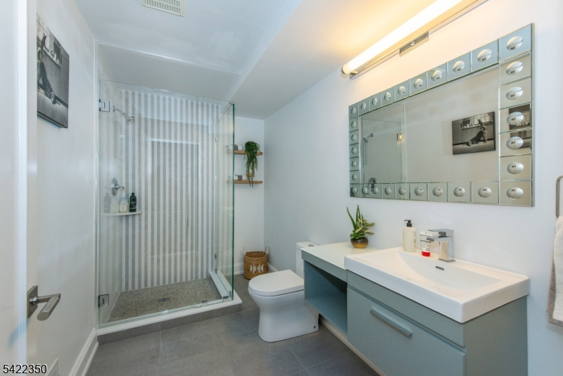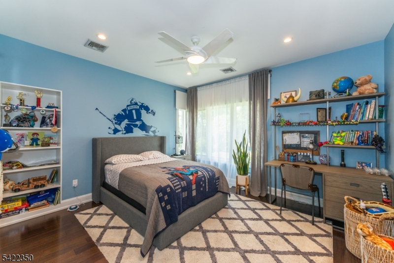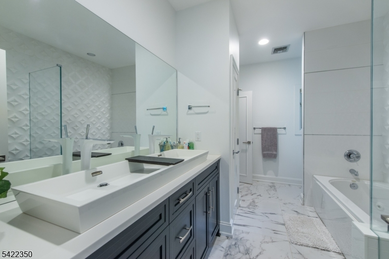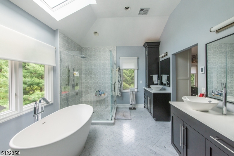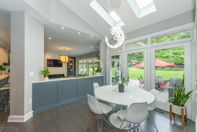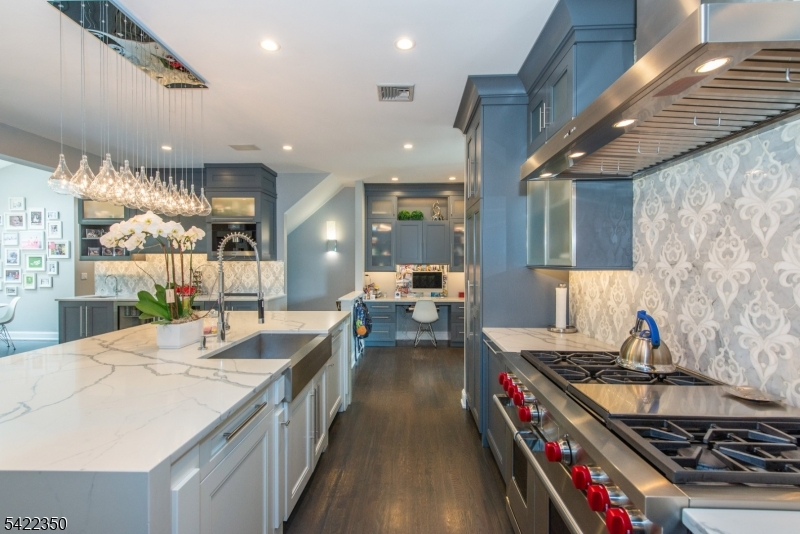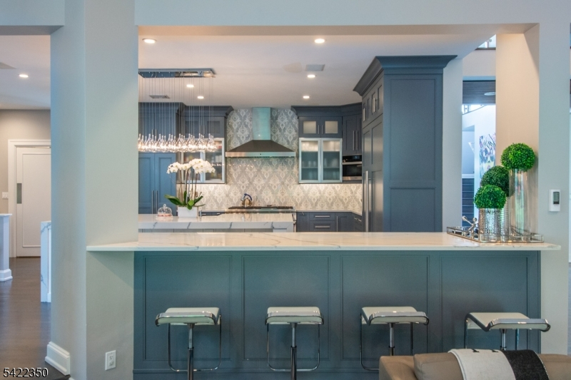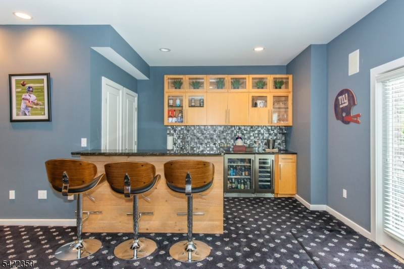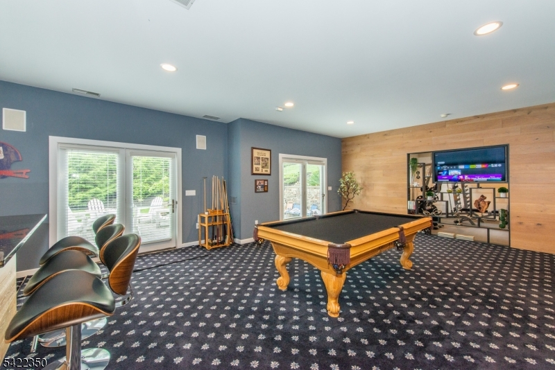 Experience sophisticated luxury in this stunning contemporary New York-style penthouse-inspired home, set in the serene suburbs of New Jersey. This exceptional residence showcases modern design, high-end finishes, and impeccable attention to detail throughout. Enter through a dramatic two-story foyer with striking lighting, glass panels, and sleek stainless steel railings. The elegant dining room features a custom wine wall, perfect for entertaining. The designer chef's kitchen offers quartz countertops, custom cabinetry, and premium finishes. The sunken family room is filled with natural light from walls of glass and features a built-in gas fireplace. Select rooms highlight accent walls with custom 3D detailing, adding a unique and modern touch. Step outside to a resort-style backyard with multiple seating areas, landscaped grounds, and space for play or relaxation. The finished lower level is an entertainer's dream with a private movie theater, cigar lounge, and home gym. A dedicated home office provides the perfect work-from-home setup. The luxurious primary suite features a custom dressing area with built-in closets and display storage. With 5 bedrooms and 5.5 baths, this home offers the perfect blend of comfort, style, and upscale living.