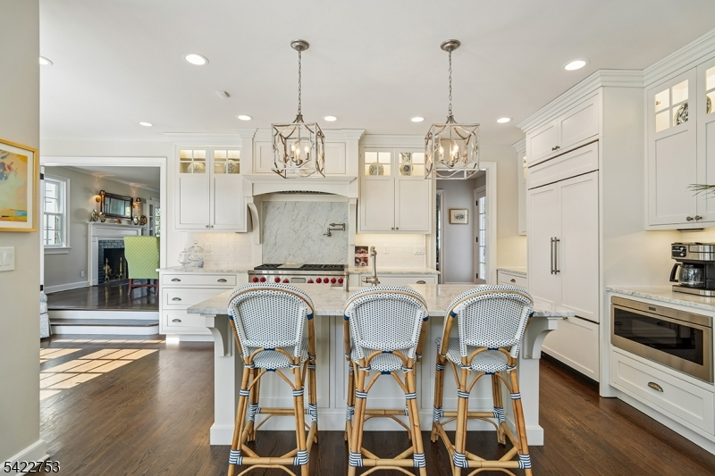 Move right into this beautifully expanded and renovated 4 bedroom, 2.1 bath picture perfect Colonial. 2016 Custom addition by architect David Rosen includes gourmet kitchen, expansive family room and luxury primary suite. Designer eat in kitchen with marble accents, large seated center island with farmhouse sink and breakfast area. Open concept family room with gas fireplace and French doors that lead to a blue stone patio and private fenced level yard ideal for entertaining. An elegant powder room, separate butlers pantry with service bar and direct access from pantry to garage and drive are convenient extras. A welcoming entry leads to cozy living room, gracious formal dining room with fireplace and a sun-filled library/home office. Dark hardwood flooring throughout. Spacious primary suite features high tray ceiling, gas fireplace, 3 custom fitted closets and luxury bath with double sinks and expansive walk in shower. 3 additional bedrooms, marble hall bath with tub shower plus a convenient second-floor laundry. Comfortable finished lower level recreation room with wide planked tile flooring, expansive storage areas and second laundry. Great neighborhood close to Washington Elementary School and Tatlock Sports Complex. Enjoy complete suburban living at its finest!