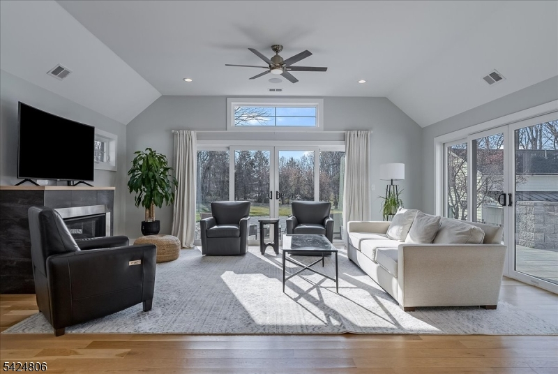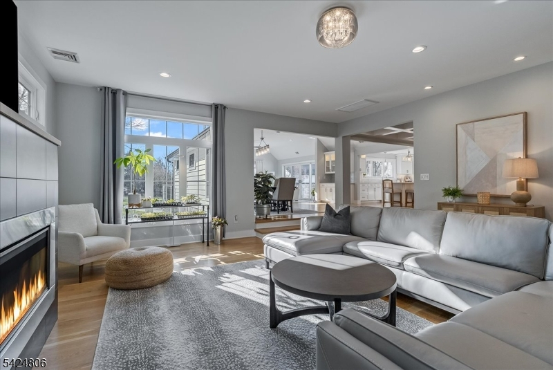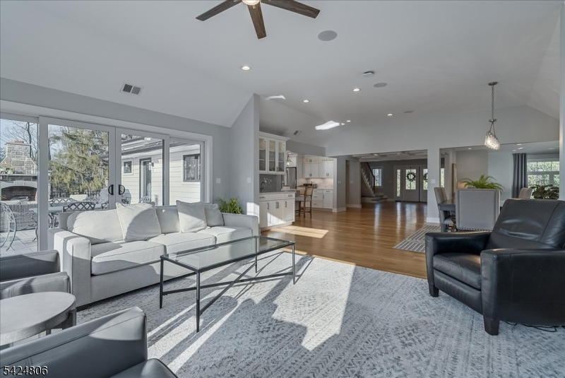 Set on just under 2 acres in one of Denville's most convenient locations, this property offers a rare balance of privacy and proximity- tucked away, yet moments to everything. Thoughtfully renovated + reimagined in 2022, the property is anchored by a custom 4,100sf home, a furnished 1,400sf carriage house and a resort-style outdoor setting. The home features a first-floor primary suite, open concept floorplan where the gourmet kitchen connects seamlessly w/sunken living room, dining/living room spaces, HW flooring, 3 gas fireplaces and 3 car garage. Designed for seamless indoor-outdoor living, the family room features 10-foot center- opening sliders that lead directly to the expansive tiered paver patio. Plenty of entertaining and relaxation space outside whether you're ready to jump in the kidney-shaped heated saltwater pool or unwind by the outdoor WB fireplace w/built in chimney. The carriage house adds another layer of versatility w/ its own 2-car temp-controlled garage, kitchenette, 1.5 baths, W/D, it's ideal as a pool house, private office, or creative studio. Exquisite curb appeal, clean architectural lines, a blend of board and batton with horizontal siding, black framed windows, seam metal roof accents- its dialed in and turnkey for today's luxury buyer. This home is designed for both everyday easy living and elevated entertaining. A setting that feels removed but never disconnected. It delivers space, function and a lifestyle that's rarely available in Denville.